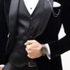 Este texudo de Genesis Trajes Elegantes SRL es una pieza que redefine el vestir formal masculino. Confeccionado en tonos contrastantes —negro profundo y azul real intenso—, logra una armonía visual que transmite sofisticación sin rigidez. La chaqueta presenta un corte slim fit que estiliza la figura, con solapa de seda azul que aporta un brillo sutil y moderno. El chaleco, en tono coordinado, añade estructura y versatilidad, mientras el pantalón negro de caída limpia completa el conjunto con sobriedad y clase.